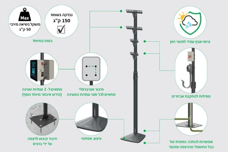 הזרועות עמידות לתנאי חוץ ומאפשרות שימוש נוח, קל ובטיחותי ביום ובלילה בכבלי הטעינה.